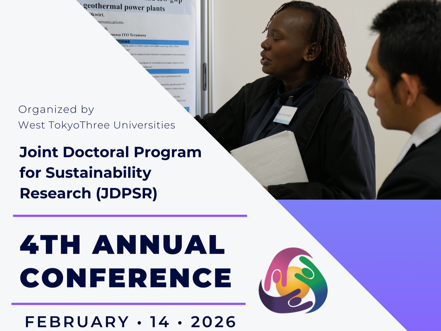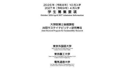 Joint Doctoral Program for Sustainability Research (JDPSR) is jointly offered by the Tokyo University of Foreign Studies (TUFS), the Tokyo University of Agriculture and Technology (TUAT), and the University of Electro-Communications (UEC), and offers the specializations of the three universities in sustainability research to PhD students and aims at contributing to the solutions of global challenges.